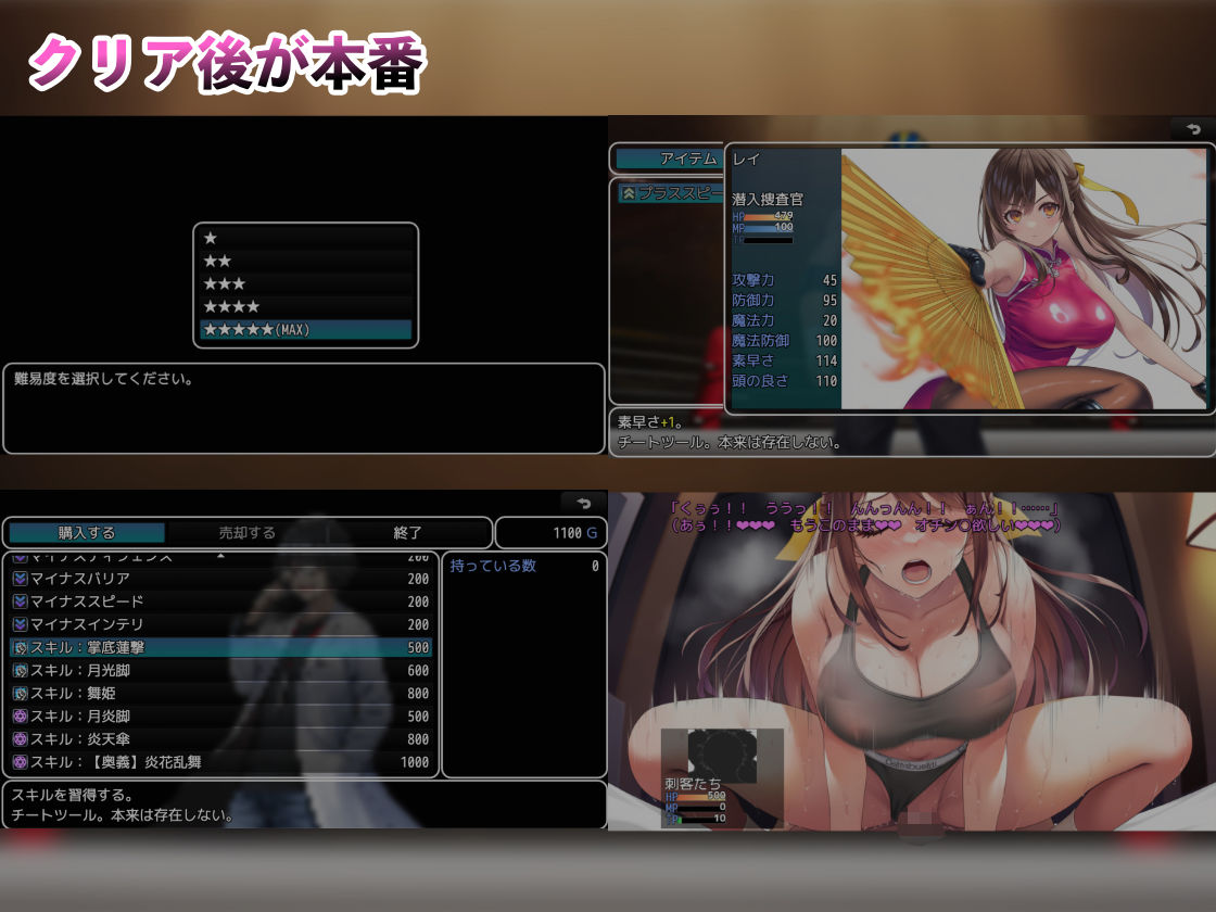 戦闘中はセクハラ攻撃まで、敗北後はH攻撃に変わります