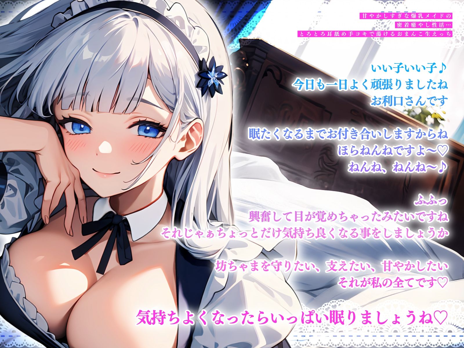 【甘やかしすぎな爆乳メイドの密着癒やし性活…とろとろ耳舐め手コキで蕩けるおまんこ生えっち】 作者名